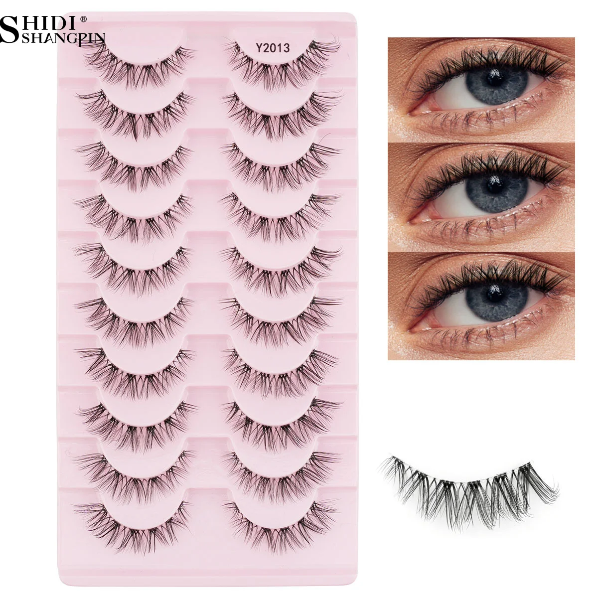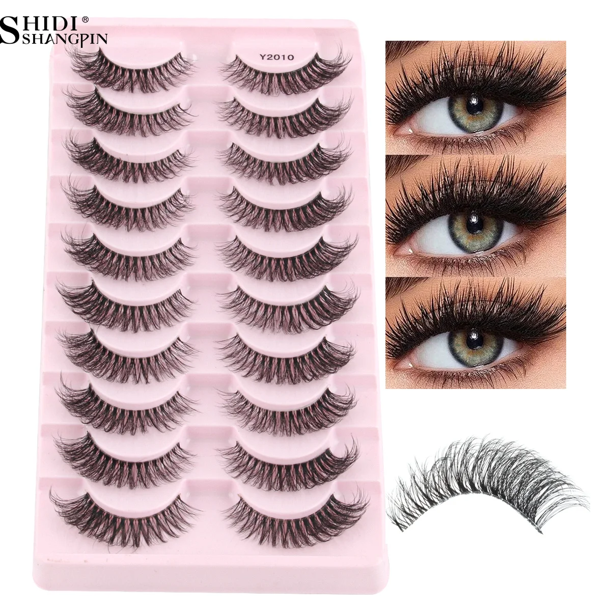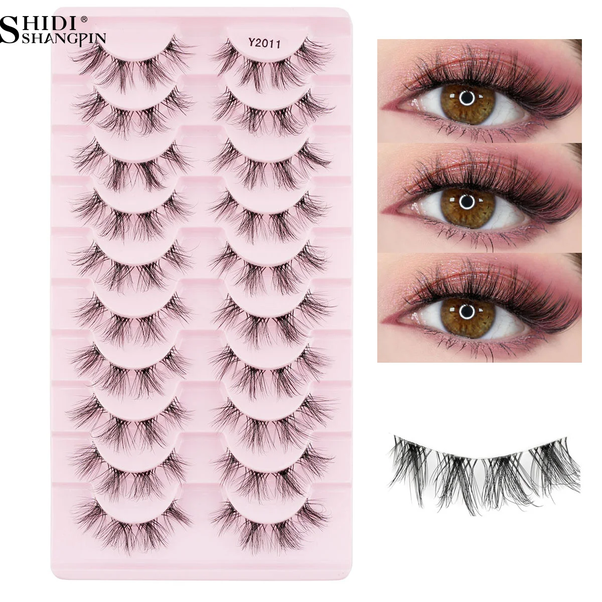 3/10 Pairs Fake Eyelashes Faux Cils 3D Mink Winged Wispy Soft False Lashes Eye End Extension Clear Band Natural Look Eye Makeup