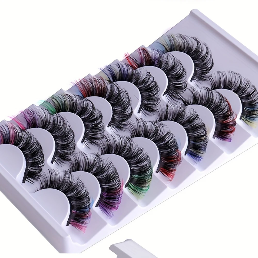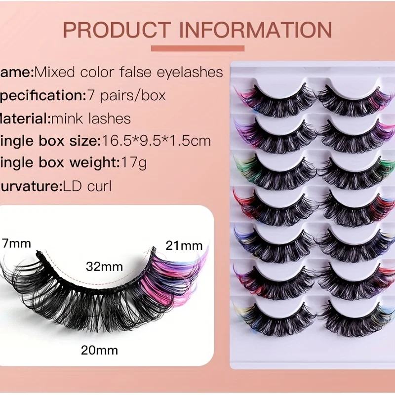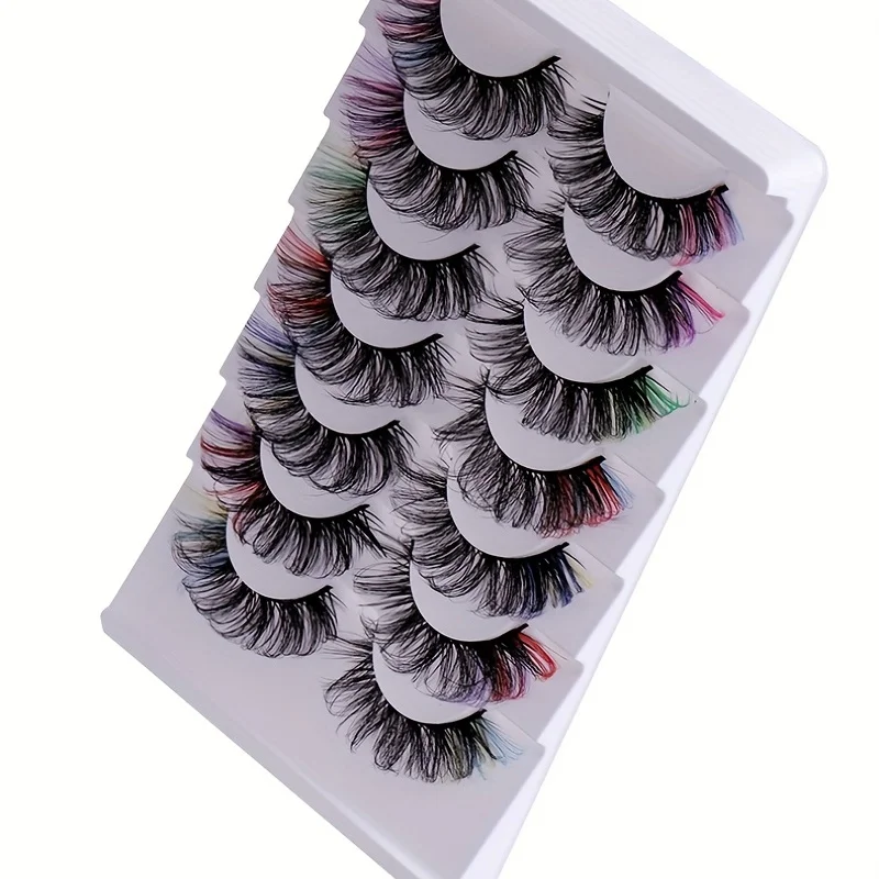 7 pairs of popular color fake eyelashes, thick and curled, simulated D-curve double eyelid eyelashes