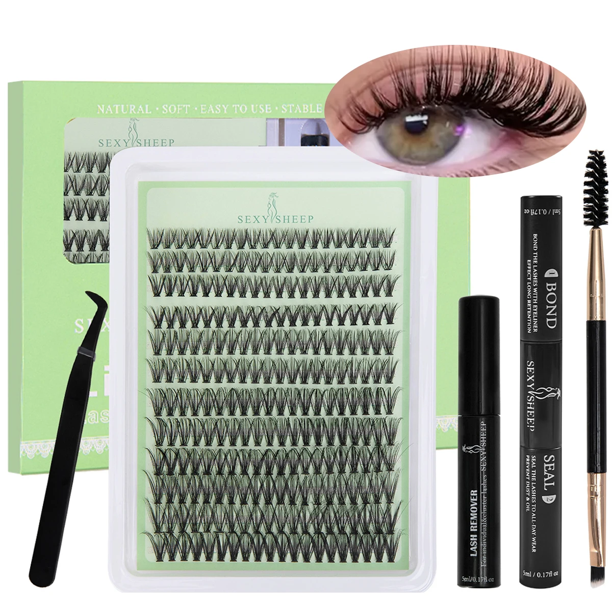 DIY Lash Extension Kit Natural Look Lash Clusters Includes Eyelash Tweezers Bond And Seal Glue For Salon at Home Makeup