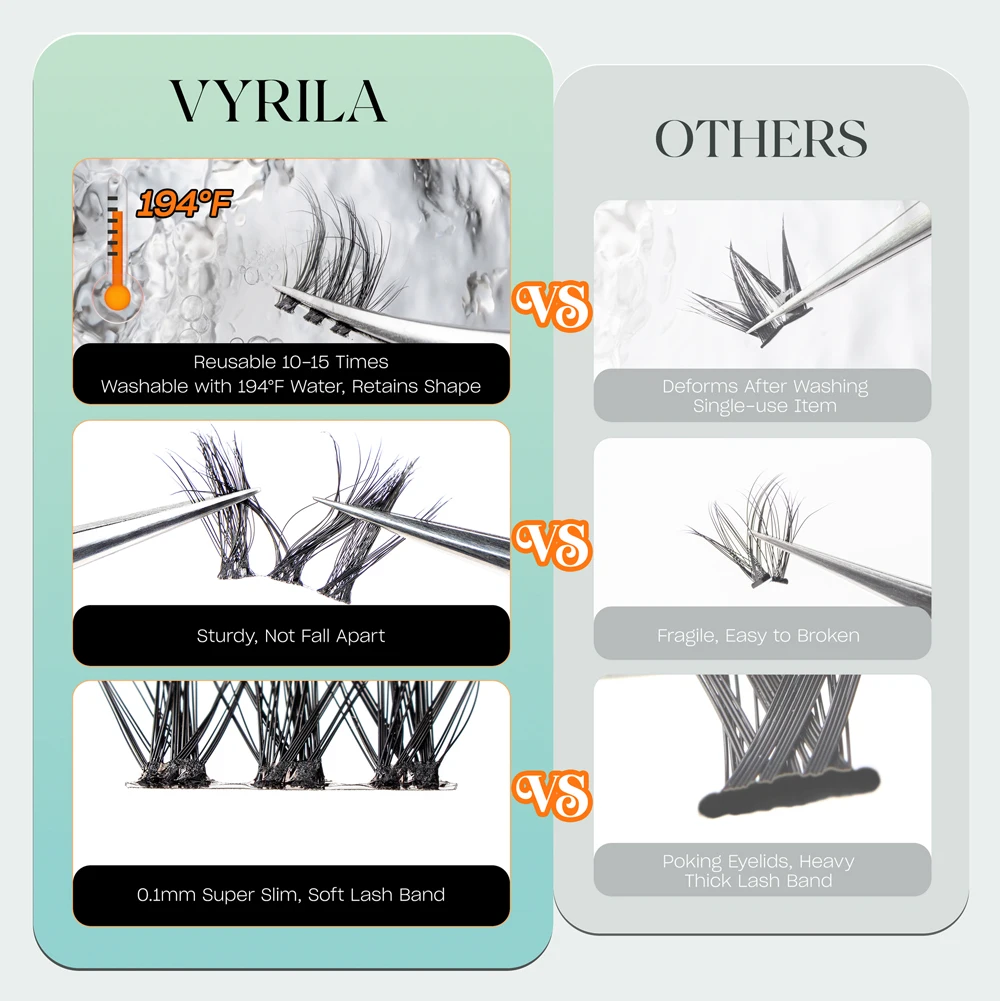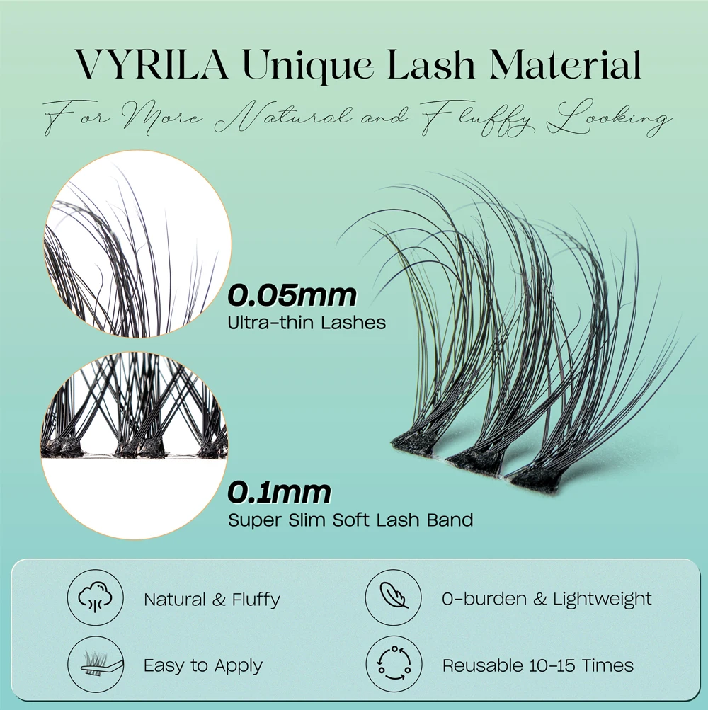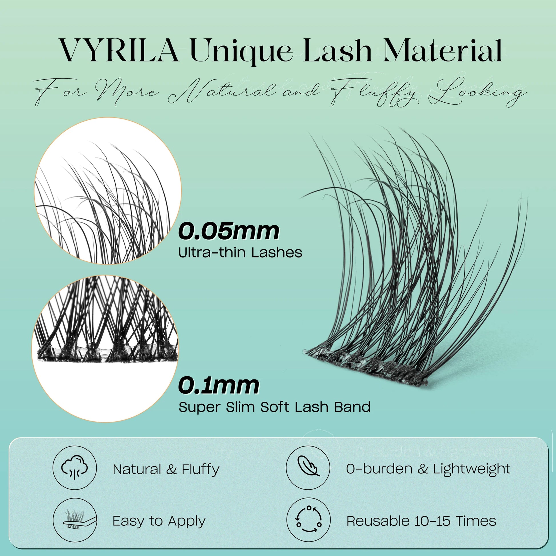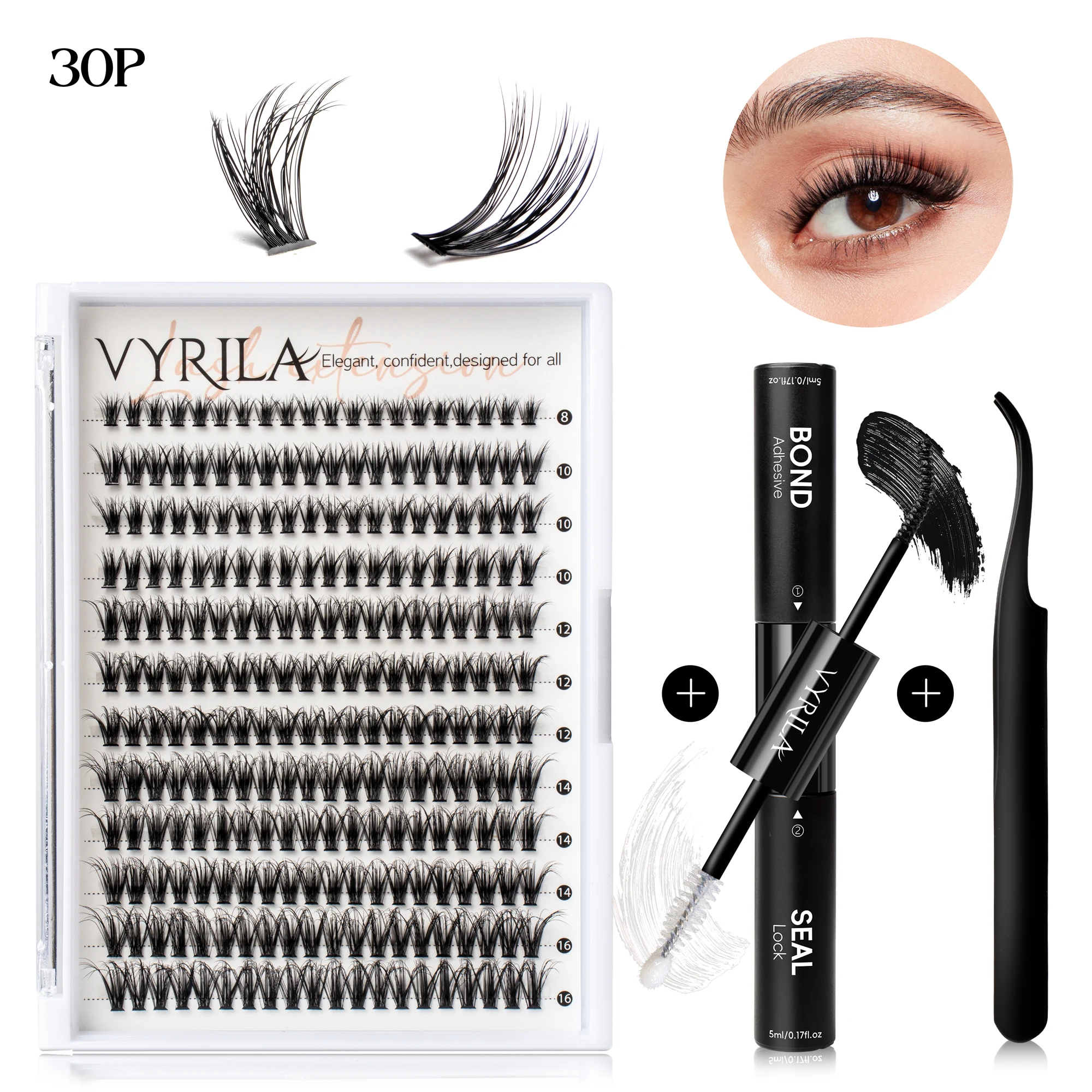 VYRILA Lash Extension Kit Wispy C Curl Lash Clusters Kit Hush 8-16mix Individual Lashes with Lash Bond and Seal Lash Tweezers